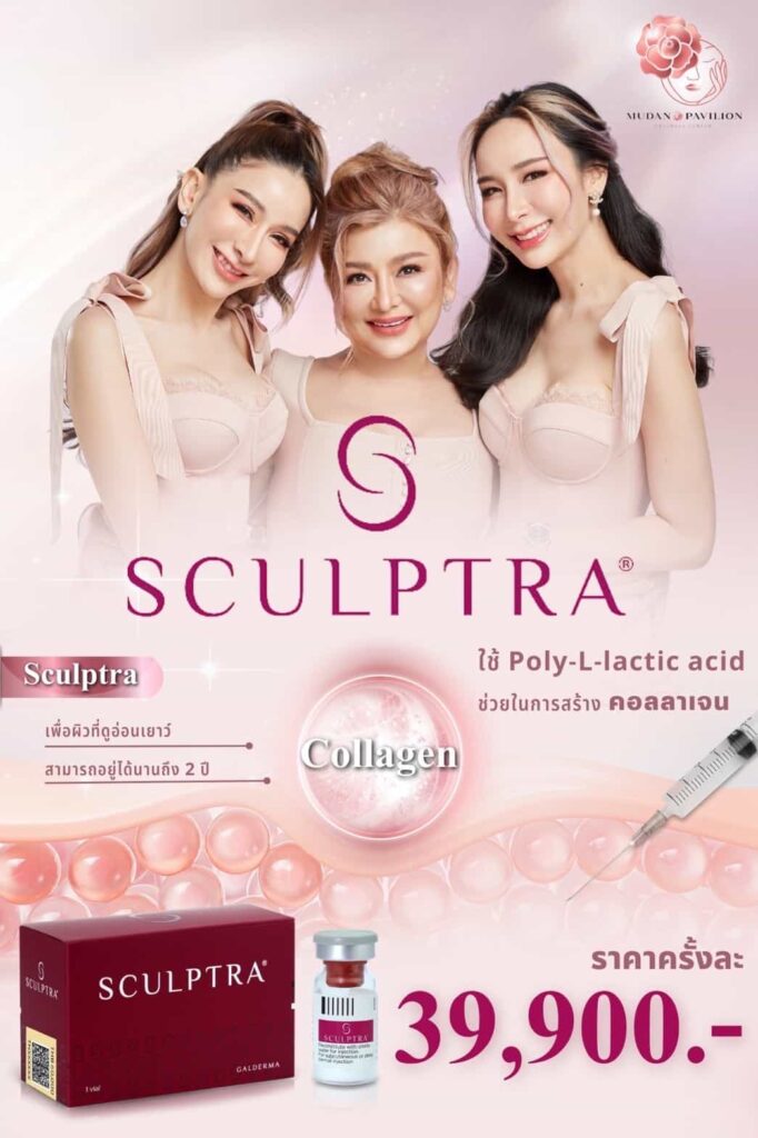 Sculptra (สเกาตร้า) หรือก็คือ Poly-L-lactic acid (PLLA) ซึ่งจัดอยู่ในกลุ่ม Collagen Biostimulator สารกระตุ้นการสร้างคอลลาเจนในผิวหนัง ทำงานโดยการกระตุ้นให้ร่างกายสร้างคอลลาเจนใหม่ ทำให้ผิวดูเต็มขึ้นและลดริ้วรอยได้อย่างเป็นธรรมชาติ