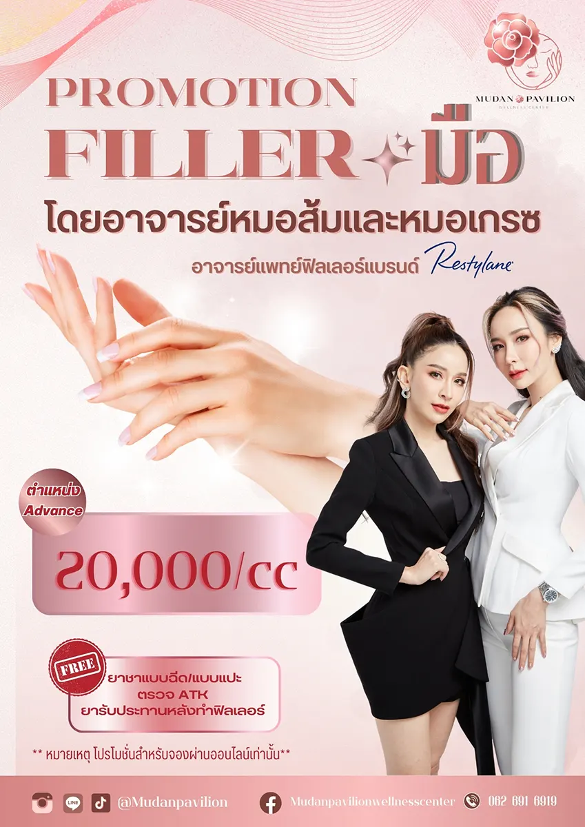 - ฟิลเลอร์จะช่วยเพิ่มความมั่นใจในการแสดงมือ โดยเฉพาะบุคคลที่มีความกังวลในเรื่องอายุมือ